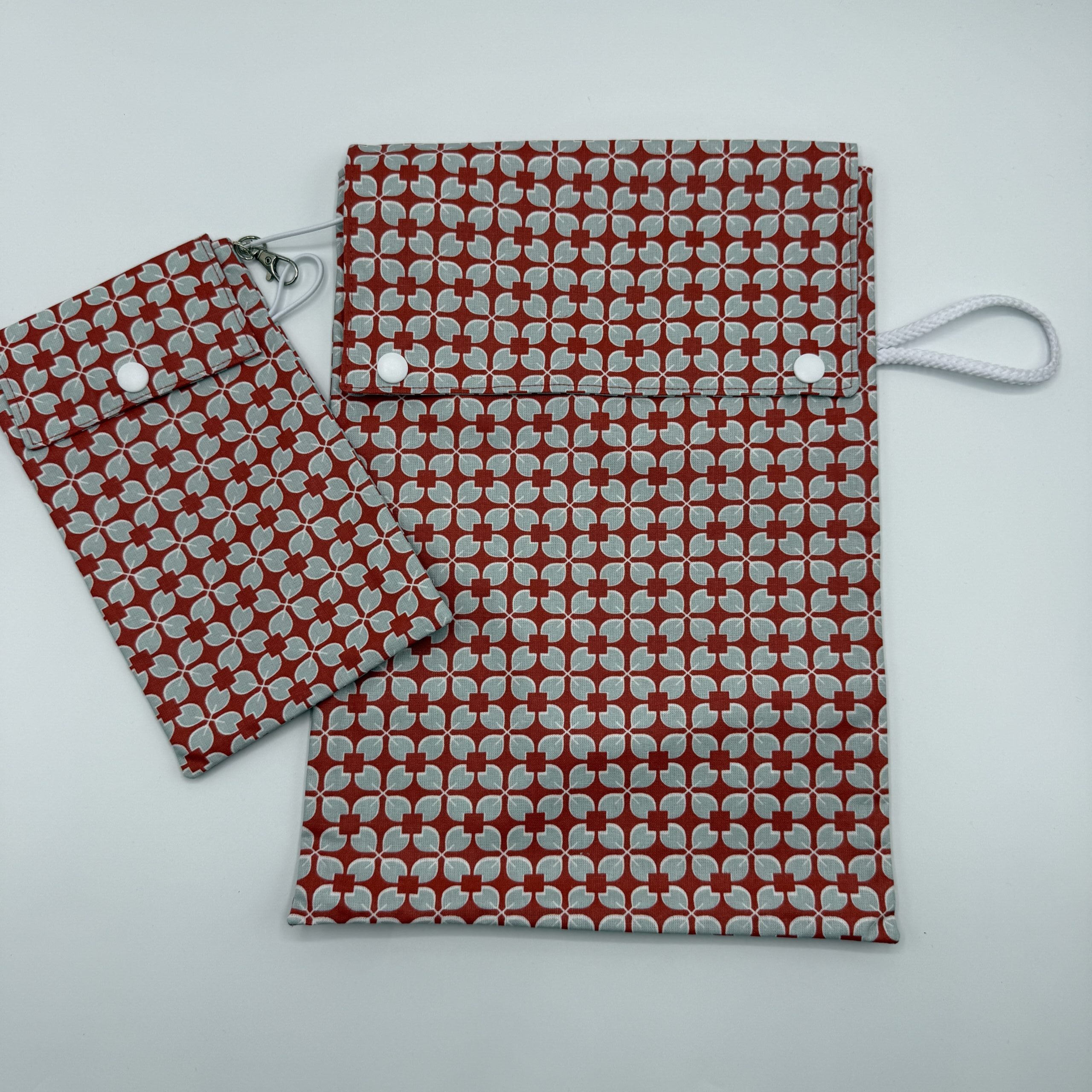 Elle est accompagnée de sa pochette téléphone ( hauteur : 16,5 cm ; largeur : 10 cm) qui peut s’accrocher à la pochette à livres par un mousqueton (qui vous permet aussi d’accrocher vos clés !)
