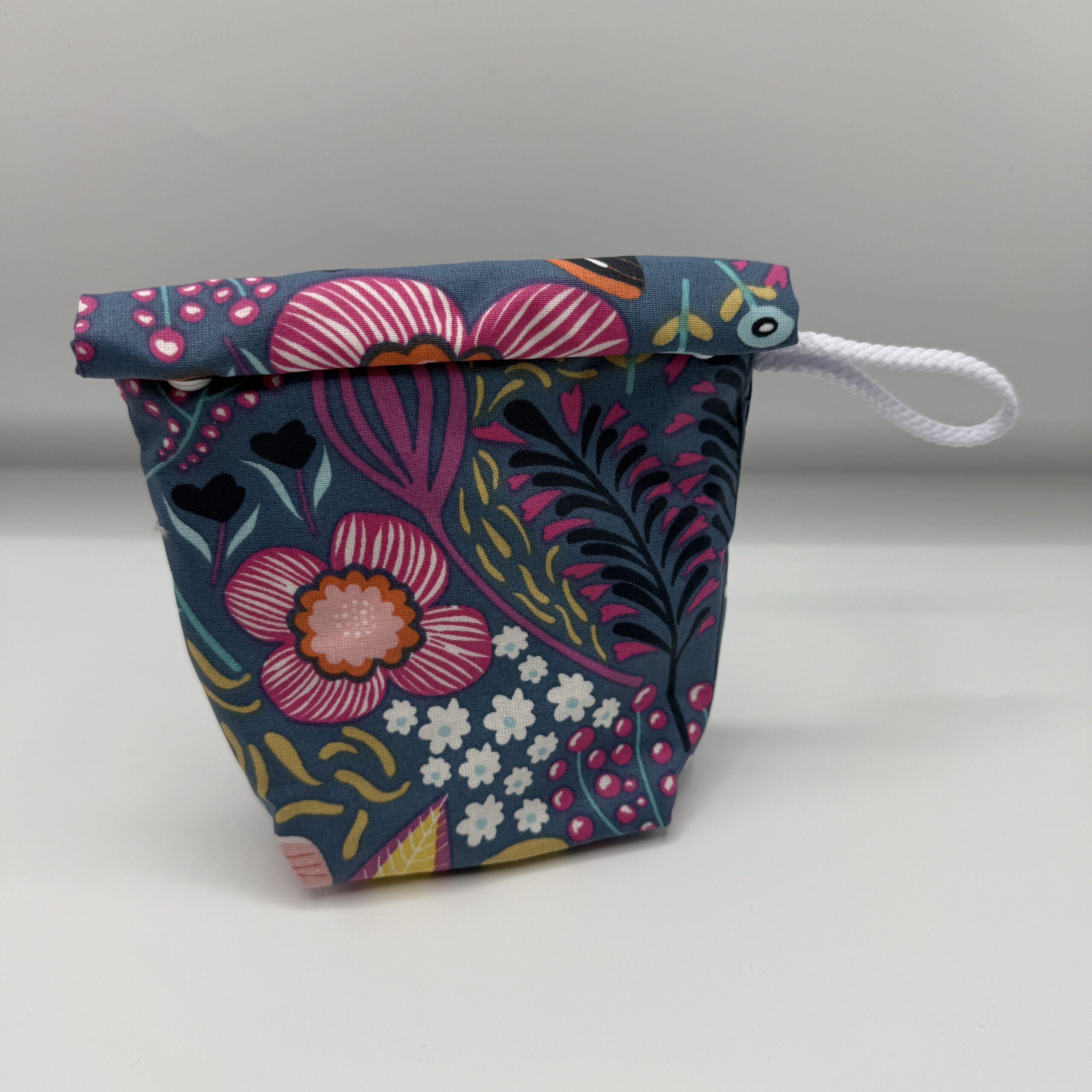 Vous pourrez emporter facilement vos gâteaux, fruits, sandwichs … et même transporter votre tasse ! En repliant le haut, le sac devient panière, pratique lors d’un pique-nique ou dans votre cuisine.